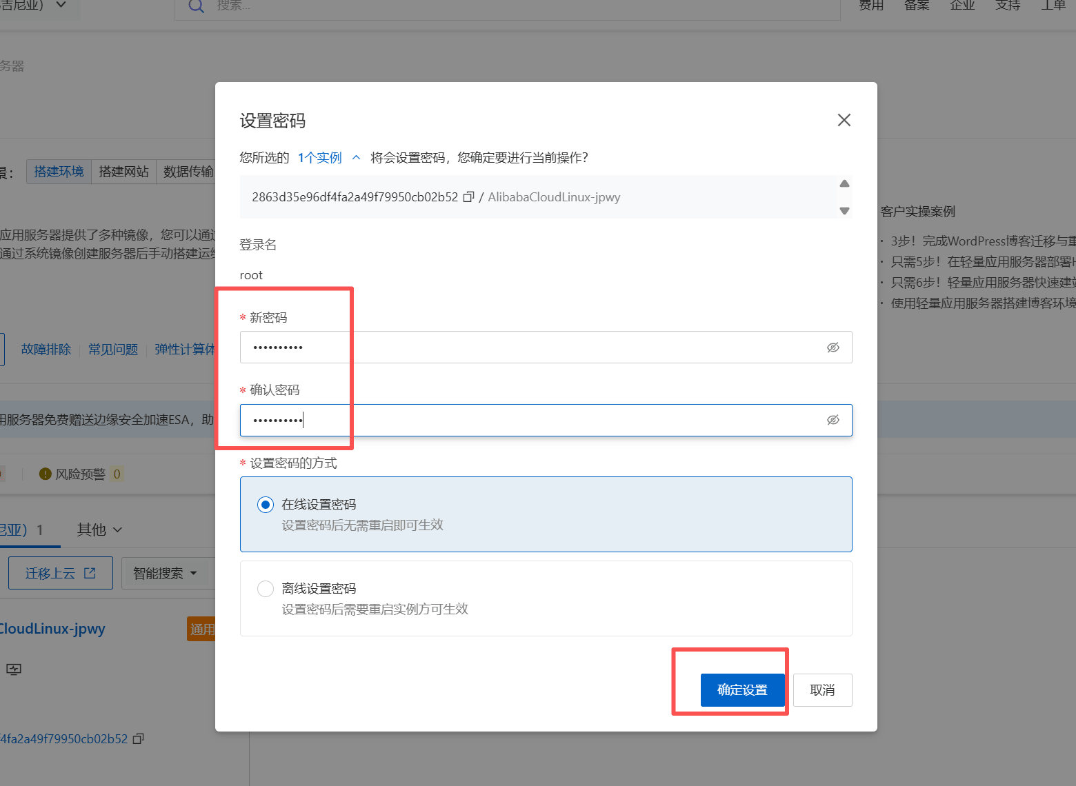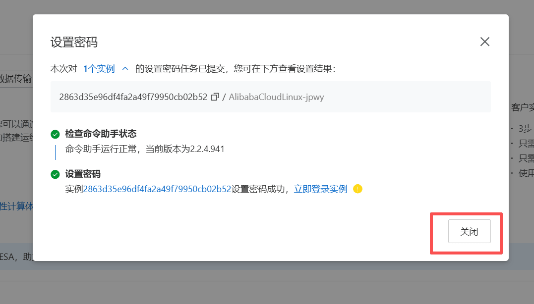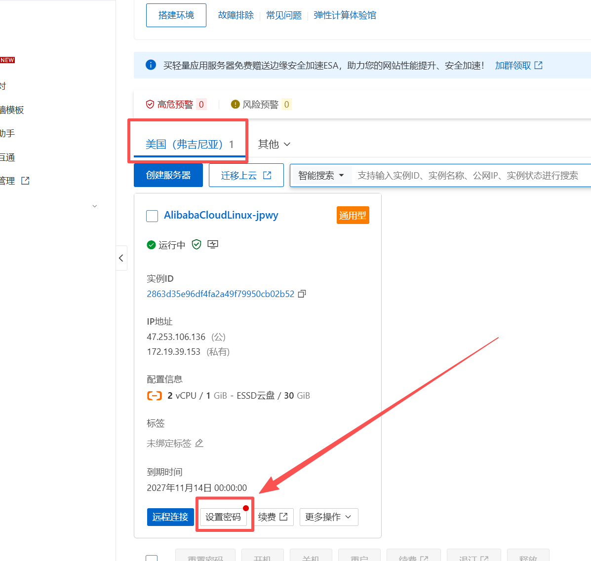 4、看到刚刚购买的服务器,点击【设置密码】