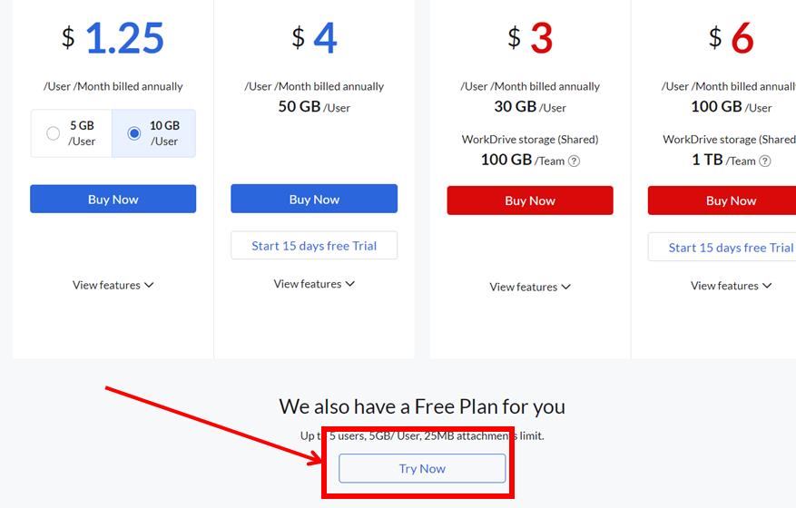 免费套餐支持5个用户,每个用户5GB存储空间,每封邮件的附件最大25M,基本够用了。
