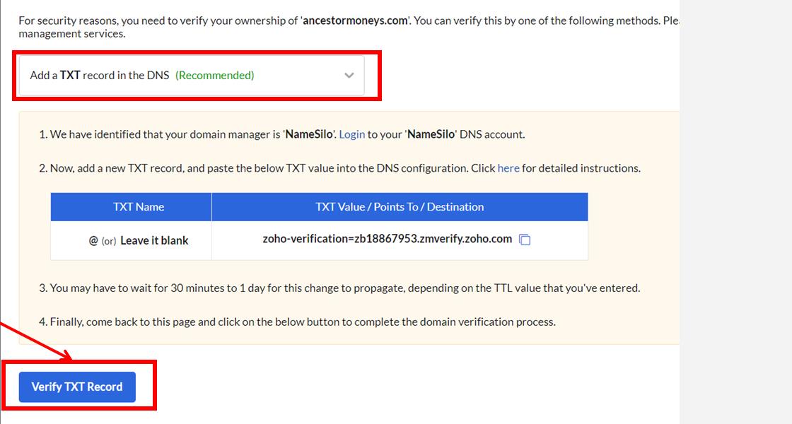 10、这里有多种验证方法,我们选择 添加TXT记录