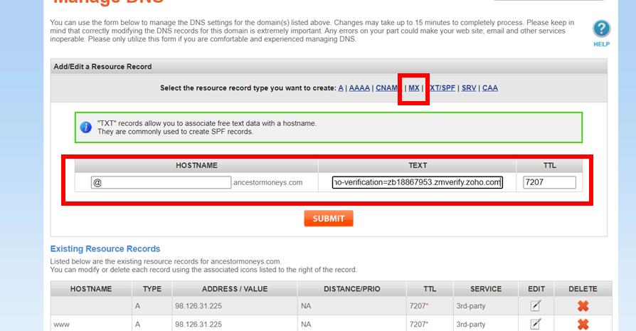 11、在域名解析中,添加一个TXT解析,查看【域名解析详细设置方法】