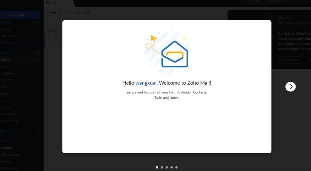 2、日常邮箱使用地址 https://mail.zoho.com/zm/ 管理员或成员登录,日常接受发送邮件等。